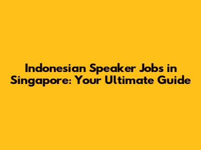 Indonesian Speaker Jobs In Singapore: Your Ultimate Guide