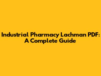 Industrial Pharmacy Lachman PDF: A Complete Guide