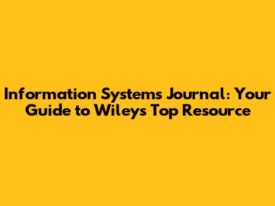 Information Systems Journal: Your Guide To Wiley's Top Resource