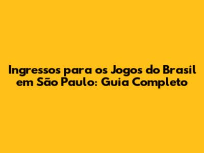 Ingressos Para Os Jogos Do Brasil Em São Paulo: Guia Completo