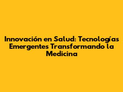 Innovación En Salud: Tecnologías Emergentes Transformando La Medicina