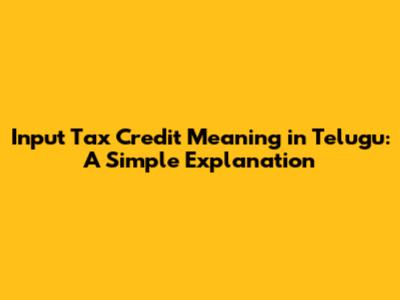 Input Tax Credit In Telugu: A Simple Explanation