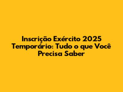 Olá, pessoal! Se você está pensando em dar uma guinada na sua vida e servir ao país, a Inscrição Exército 2025 Temporário pode ser a sua chance! Neste artigo, vamos mergulhar em tudo o que você precisa saber sobre como se inscrever, os requisitos, as vantagens e dicas para se destacar no processo seletivo. Prepare-se para embarcar nessa jornada conosco e descobrir como se tornar um militar temporário em 2025. Vamos nessa?