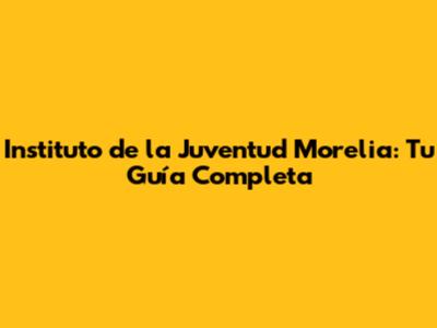 Instituto De La Juventud Morelia: Todo Lo Que Necesitas Saber