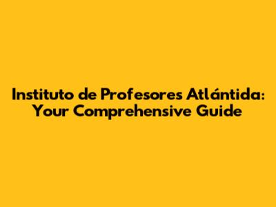 Instituto De Profesores Atlántida: Everything You Need To Know