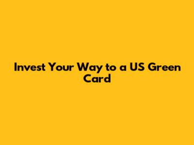 Invest Your Way To A US Green Card