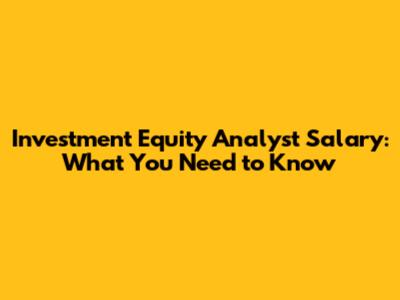 Investment Equity Analyst Salary: What You Need To Know