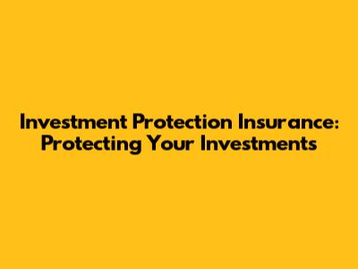 Investment Protection Insurance: Safeguarding Your Financial Future