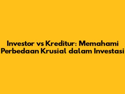 Hai, teman-teman! Pernahkah kalian bertanya-tanya apa perbedaan mendasar antara investor dan kreditur? Dalam dunia keuangan, kedua peran ini sangat penting, tetapi seringkali membingungkan. Artikel ini akan mengupas tuntas perbedaan antara investor dan kreditur, menjelaskan hak, kewajiban, serta risiko dan keuntungan yang mereka hadapi. Mari kita selami dunia investasi dan kredit untuk memahami peran masing-masing secara lebih mendalam!