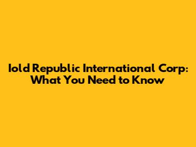 Iold Republic International Corp: What You Need To Know