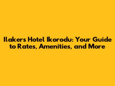 Ilakers Hotel Ikorodu Price List: Room Types and Rates