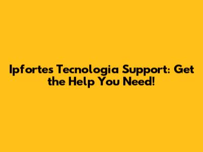 Ipfortes Tecnologia Support: Get The Help You Need!
