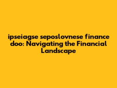 Unveiling ipseiagse seposlovnese finance doo: What is it?