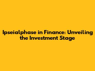 Ipseialphase In Finance: Unveiling The Investment Stage
