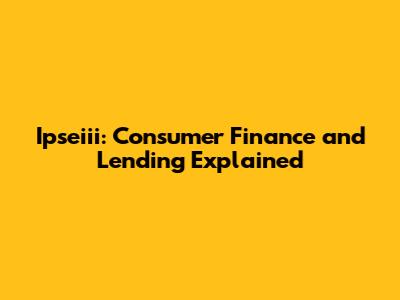 Ipseiii: Consumer Finance And Lending Explained