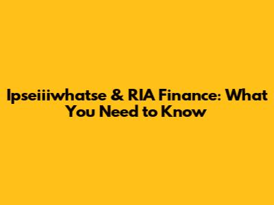 Ipseiiiwhatse & RIA Finance: What You Need To Know