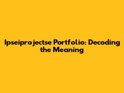 Ipseiprojectse Portfolio: What Does It All Mean?