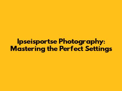 Ipseisportse Photography: Mastering The Perfect Settings