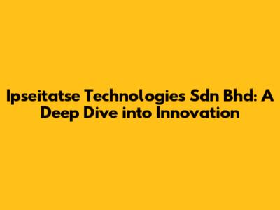 Hey tech enthusiasts! Ever heard of Ipseitatse Technologies Sdn Bhd? If not, you're in for a treat! This article is your go-to guide for everything you need to know about this dynamic company. We're diving deep, exploring their services, their impact, and what makes them a player in the tech world. So, buckle up, grab your favorite beverage, and let's unravel the story of Ipseitatse Technologies!