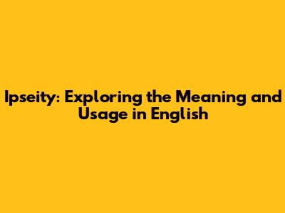 Ipseity: Exploring The Meaning And Usage In English