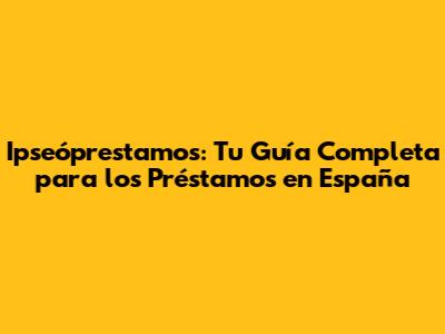 Ipseóprestamos: Entendiendo Los Préstamos En España