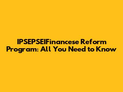 IPSEPSEIFinancese Reform Program: All You Need To Know