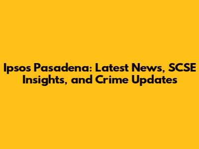Ipsos Pasadena: Latest News, SCSE Insights, And Crime Updates