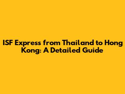 ISF Express From Thailand To Hong Kong: A Detailed Guide