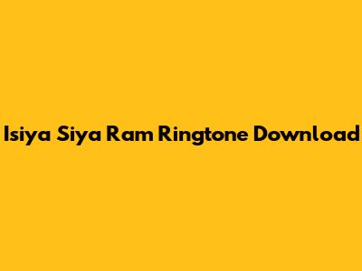 Isiya Siya Ram: Download The Perfect Ringtone!