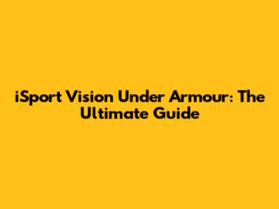 ISport Vision Under Armour: The Ultimate Guide
