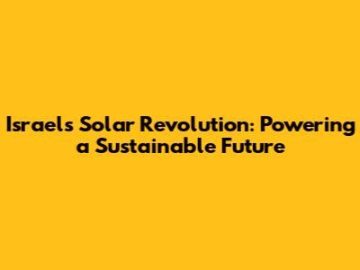 Israel's Solar Revolution: Powering A Sustainable Future
