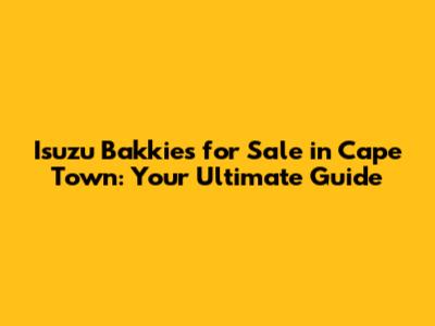 Isuzu Bakkies For Sale In Cape Town: Your Guide