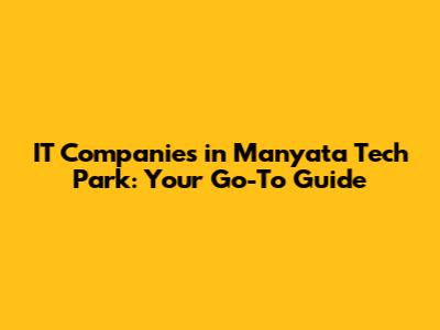 IT Companies In Manyata Tech Park: Your Go-To Guide