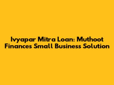 Ivyapar Mitra Loan: Muthoot Finance's Small Business Solution