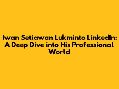 Hey guys! Let's dive into the professional world of Iwan Setiawan Lukminto and explore his LinkedIn profile. LinkedIn has become an incredibly powerful tool for professionals to showcase their experience, skills, and network. So, what can we learn from Iwan Setiawan Lukminto's profile? We'll explore his career trajectory, the skills he highlights, the companies he's been involved with, and any insights we can glean about his professional journey. This article aims to provide a comprehensive look, offering valuable information for anyone interested in understanding Iwan's career path or learning about industry trends. Are you ready to get started? Let's go!