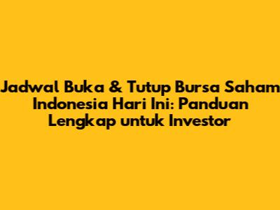 Jam buka saham Indonesia hari ini adalah informasi krusial bagi investor dan trader di pasar modal. Memahami waktu operasional bursa saham sangat penting untuk merencanakan strategi investasi, melakukan transaksi jual beli saham, dan memantau pergerakan Indeks Harga Saham Gabungan (IHSG). Artikel ini akan membahas secara detail mengenai jadwal buka dan tutup bursa efek Indonesia, serta faktor-faktor yang perlu diperhatikan oleh para pelaku pasar.