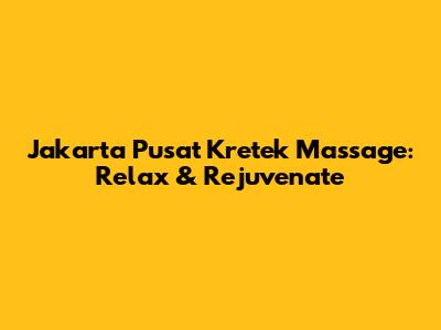 Jakarta Pusat Kretek Massage: Relax & Rejuvenate
