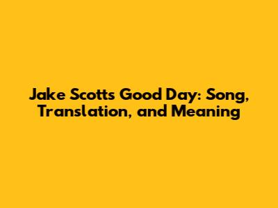 Jake Scott's Good Day: Song, Translation, And Meaning