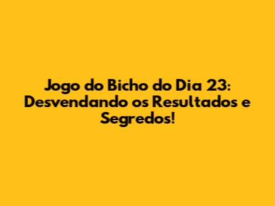 Jogo Do Bicho: Resultados Do Dia 23 E Dicas Essenciais!