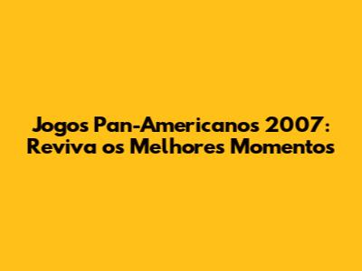 Jogos Pan-Americanos 2007: Reviva Os Melhores Momentos