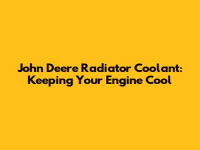 John Deere Radiator Coolant: Maintenance & Troubleshooting