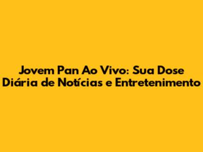 Jovem Pan Ao Vivo: Como Assistir E O Que Esperar