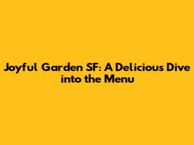Joyful Garden SF: A Delicious Dive Into The Menu