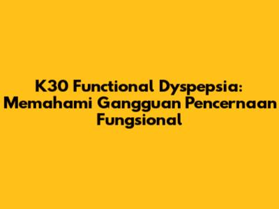 K30 functional dyspepsia adalah istilah medis yang digunakan untuk menggambarkan sekelompok gejala gangguan pencernaan yang persisten atau berulang yang tidak dapat dijelaskan oleh kelainan struktural atau penyakit lain. Gejala-gejala ini biasanya berpusat di perut bagian atas dan dapat termasuk rasa sakit, ketidaknyamanan, kembung, mual, dan perasaan cepat kenyang setelah makan. Meskipun banyak orang mengalami gejala pencernaan dari waktu ke waktu, mereka yang menderita dispepsia fungsional mengalami gejala ini secara teratur dan dalam jangka waktu yang lama. Diagnosis dispepsia fungsional seringkali merupakan proses yang menantang, karena dokter harus menyingkirkan kemungkinan penyebab lain dari gejala tersebut. Ini mungkin melibatkan pemeriksaan fisik, tes darah, endoskopi, dan tes lainnya. Setelah penyebab lain telah disingkirkan, dan jika gejalanya memenuhi kriteria tertentu, dokter dapat membuat diagnosis dispepsia fungsional. Perawatan dispepsia fungsional seringkali berfokus pada pengelolaan gejala dan peningkatan kualitas hidup pasien. Ini dapat melibatkan perubahan gaya hidup, perubahan pola makan, obat-obatan, dan terapi lainnya. Penting untuk diingat bahwa setiap individu mengalami dispepsia fungsional secara berbeda, dan rencana perawatan yang efektif harus disesuaikan dengan kebutuhan individu. Dengan pemahaman yang tepat dan pendekatan yang komprehensif, banyak orang yang menderita dispepsia fungsional dapat menemukan kelegaan dari gejala mereka dan menjalani kehidupan yang lebih sehat dan lebih bahagia.