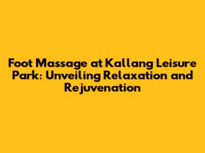 Hey there, wellness enthusiasts! Are you guys ready to embark on a journey of pure relaxation and rejuvenation? If so, you're in the right place! We're diving headfirst into the world of foot massages at Kallang Leisure Park. This article is your ultimate guide, covering everything from the incredible benefits of foot massages to finding the perfect spa experience in this vibrant Singaporean hub. Let's get started, shall we?