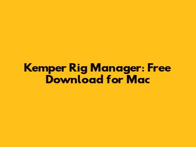 Kemper Rig Manager: Free Download For Mac