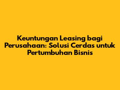 Keuntungan leasing bagi perusahaan menjadi semakin populer sebagai strategi finansial yang cerdas. Guys, dalam dunia bisnis yang dinamis, keputusan investasi yang tepat dapat menjadi penentu keberhasilan. Artikel ini akan membahas secara mendalam manfaat leasing bagi perusahaan serta bagaimana leasing untuk bisnis dapat menjadi solusi yang efisien dan efektif. Kita akan mengupas tuntas apa itu leasing aset, sewa guna usaha, dan keuntungan sewa guna usaha, hingga detail tentang leasing keuangan, leasing kendaraan, dan leasing peralatan. Jadi, mari kita selami dunia leasing untuk mengungkap segala potensi positifnya.
