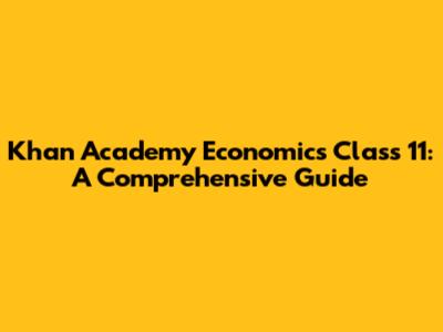 Khan Academy Economics Class 11: A Comprehensive Guide