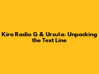 Hey everyone! Ever found yourself glued to your radio, especially during those golden hours of the morning or the evening commute? Well, if you're in the Seattle area, chances are you've tuned into Kiro Radio G, specifically to the dynamic duo of G and Ursula. These two have been a staple for years, bringing the news, weather, and a healthy dose of wit to the airwaves. But beyond the familiar voices and the daily updates, there's a whole world of listener interaction, particularly the ever-popular text line. Today, we're diving deep into the Kiro Radio G and Ursula text line, exploring what makes it tick, why it resonates with so many, and the impact it has on the show's overall appeal. Let's get into it, shall we?