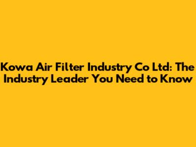 Kowa Air Filter: The Industry Leader You Need To Know